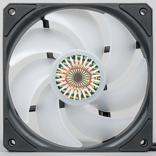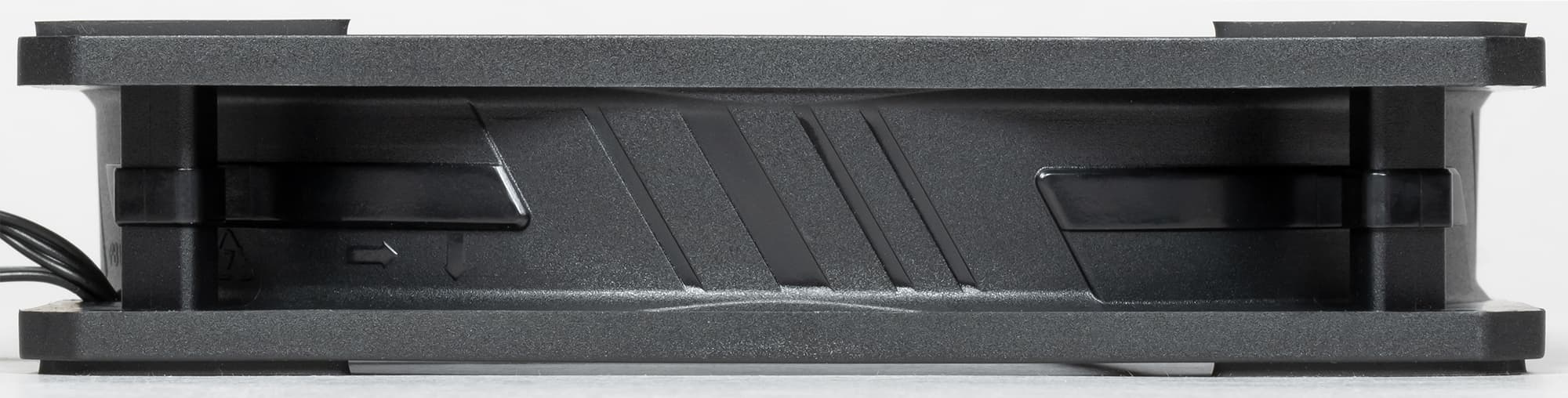 Крыльчатка вентилятора изготовлена из белого полупрозрачного пластика и снаружи слегка заматирована. На статоре вентилятора по окружности размещены шесть адресуемых многоцветных (ARGB) светодиода, которые подсвечивают крыльчатку изнутри.
