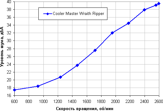 Наше тестирование показало, что в теории кулер Cooler Master Wraith Ripper можно использовать с процессорами AMD Ryzen Threadripper с 12-ю ядрами, имеющими реальное максимальное потребление порядка 230 Вт, при этом даже с учетом возможного повышения температуры внутри корпуса до 44 °C и при условии максимальной нагрузки все равно будет сохраняться очень низкий уровень шума — 25 дБА и ниже. При снижении температуры воздуха и/или менее жестких требованиях к уровню шума предел мощности можно увеличить до 280 Вт. В случае процессора Ryzen Threadripper 2990WX (32 ядра) «бесшумный» предел – это 205 Вт, а максимальный – 275 Вт. К достоинствам кулера следует отнести аккуратный дизайн, декоративную оплетку кабеля, габариты, не препятствующие установке обычных модулей памяти в ближайший разъем и модулей с высокими радиаторами от второго разъема, очень удобное крепление кулера на процессор и, конечно, многоцветную статичную или динамичную подсветку.