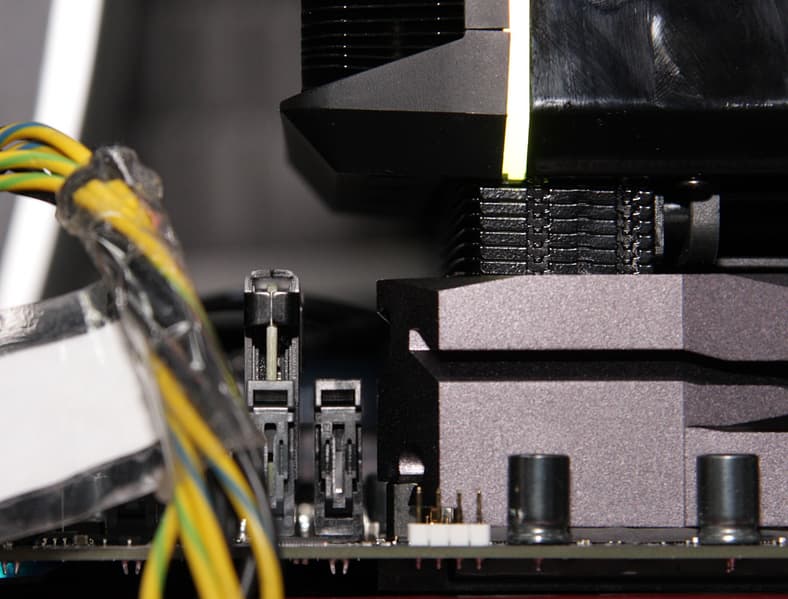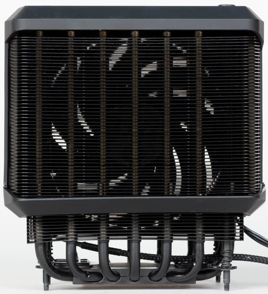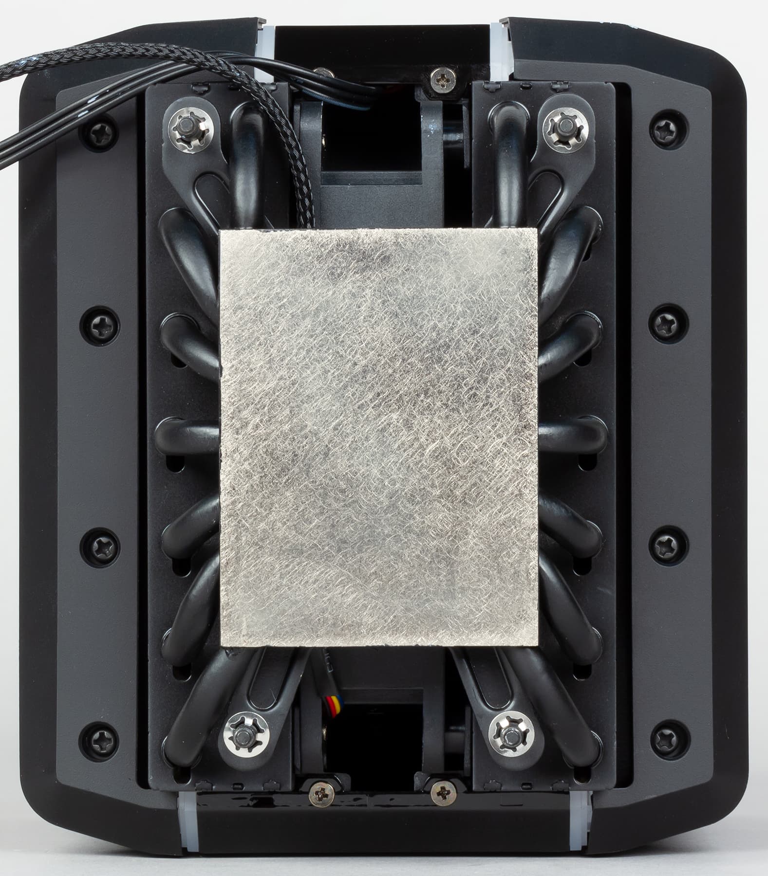 Кулер оснащен вынесенным двойным радиатором, к которому тепло от теплосъемника передается по семи U-образным тепловым трубкам диаметром 6 мм.