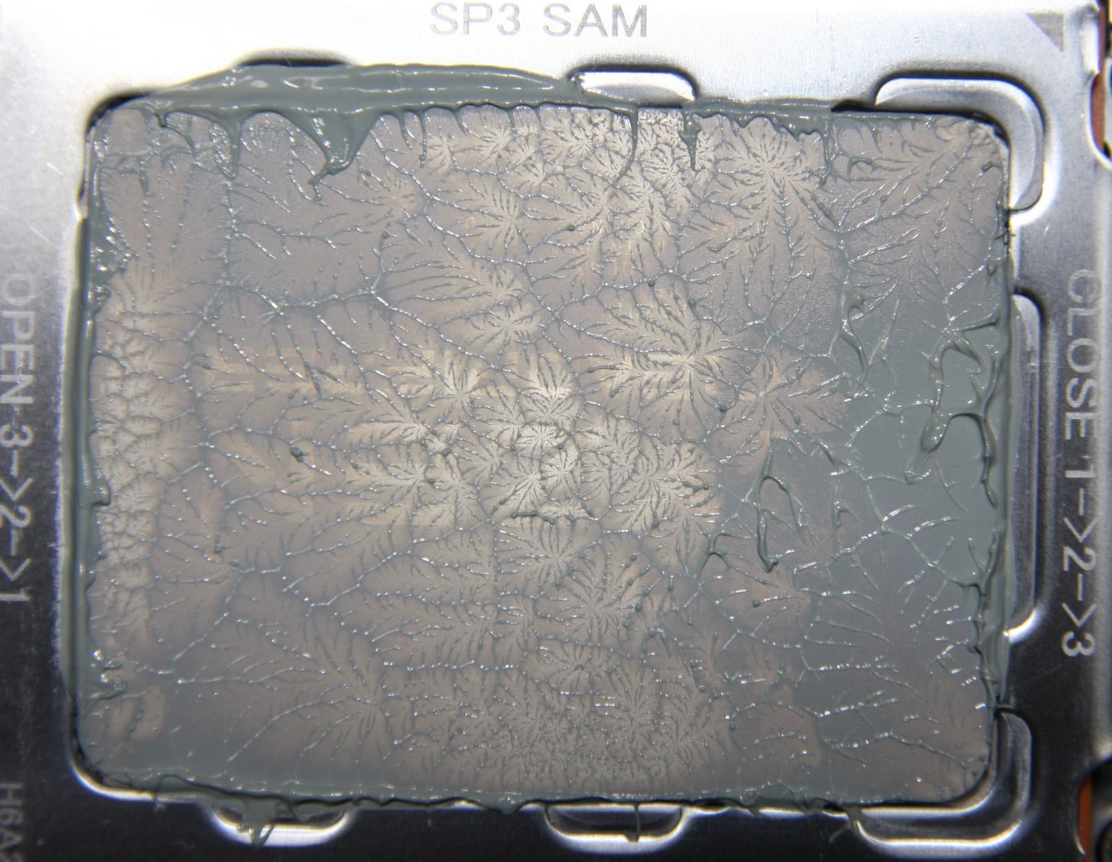 Забегая вперед, продемонстрируем распределение термопасты после завершения всех тестов. На процессоре: