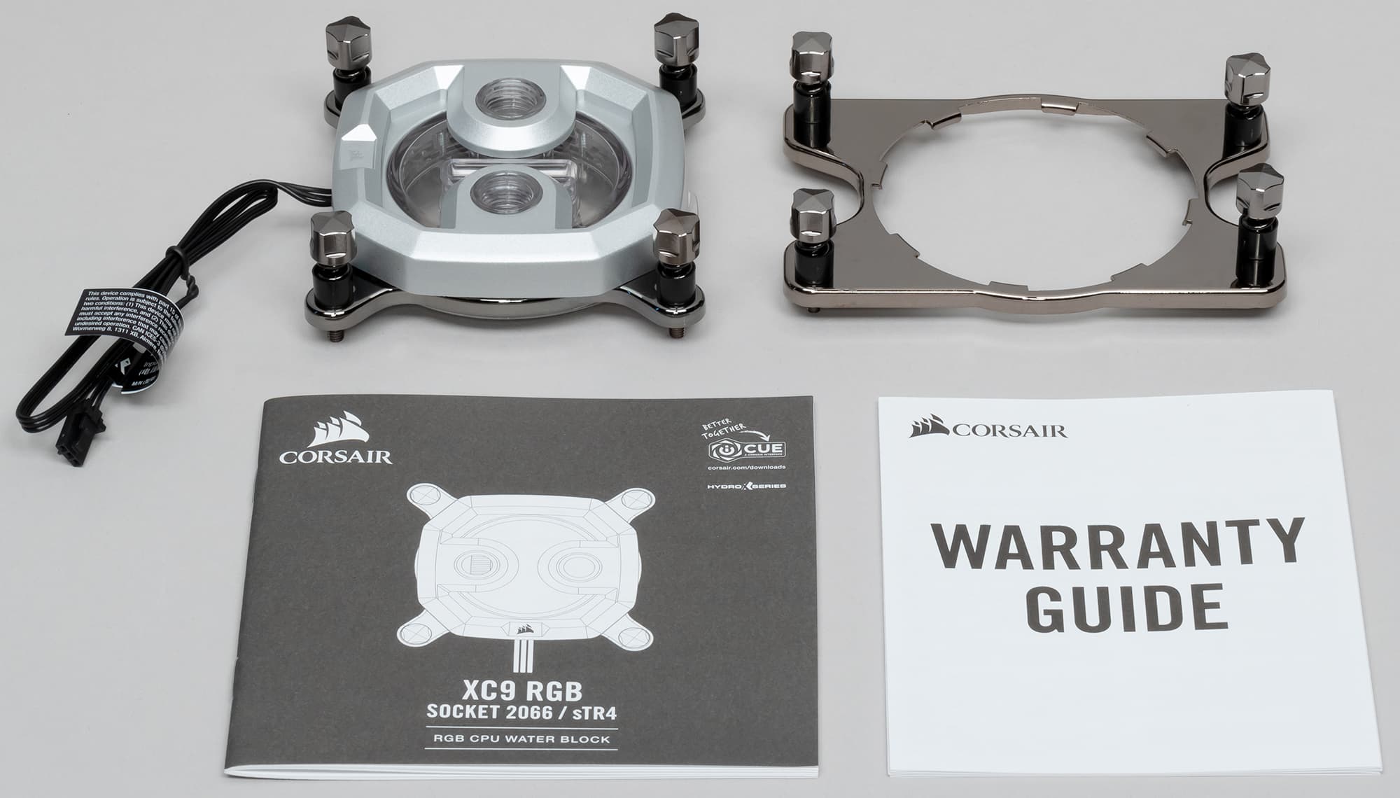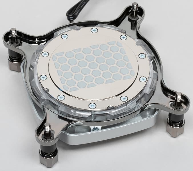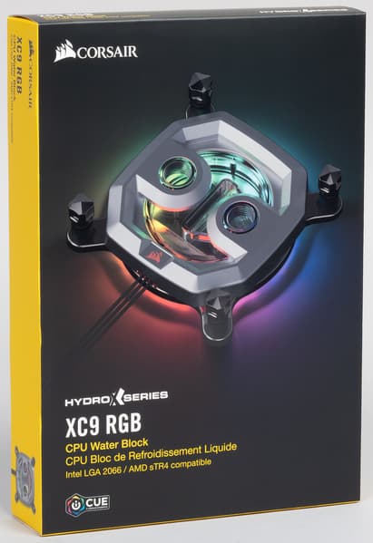 Водоблок Hydro X Series XC9 RGB совместим с процессорными разъемами Intel LGA 2066 (судя по всему — со всем семейством 20xx с расположением крепежных стоек по углам квадрата) и AMD sTR4.