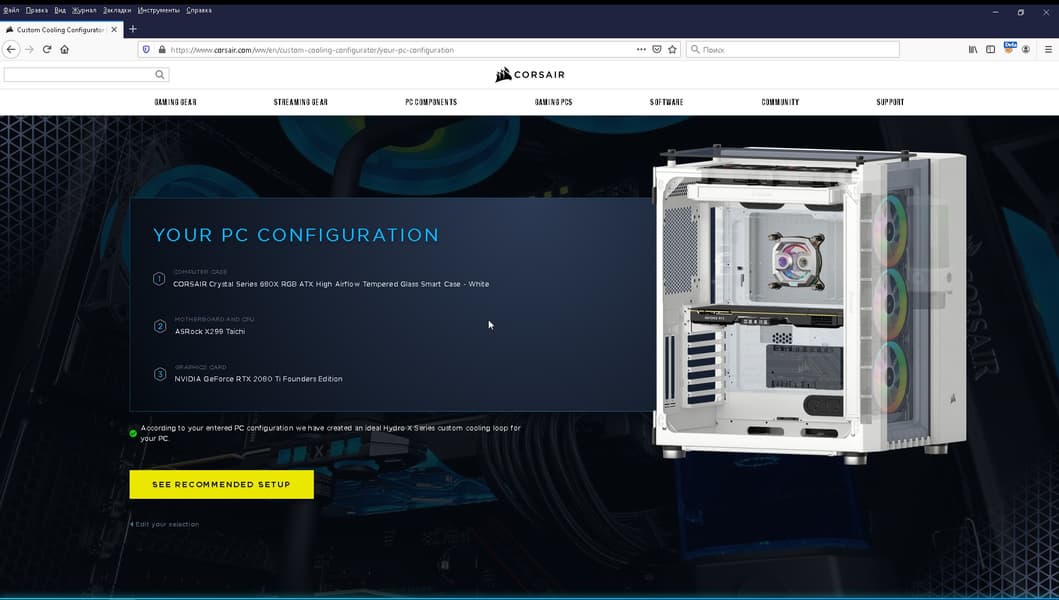 На сайте компании Corsair есть конфигуратор, который облегчит подбор компонентов СЖО под имеющиеся комплектующие. У нас задача была противоположной, так как практически все компоненты СЖО уже были, но описать такой полезный инструмент все же стоит.