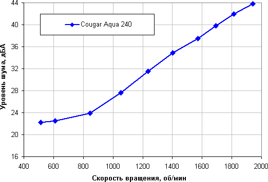 Уровень шума этой системы охлаждения меняется в широком диапазоне. Зависит, конечно, от индивидуальных особенностей и других факторов, но где-то от 40 дБА и выше шум, с нашей точки зрения, очень высокий для настольной системы; от 35 до 40 дБА уровень шума относится к разряду терпимых; ниже 35 дБА шум от системы охлаждения не будет сильно выделяться на фоне типичных небесшумных компонентов ПК — корпусных вентиляторов, вентиляторов на блоке питания и на видеокарте, а также жестких дисков; а где-то ниже 25 дБА кулер можно назвать условно бесшумным. Фоновый уровень был равен 16,6 дБА (условное значение, которое показывает шумомер).