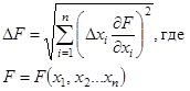 Как известно, погрешность вычисляемой, а не измеряемой непосредственно величины F, зависящей от переменных {x1, x2... xn}, рассчитывается по формуле: