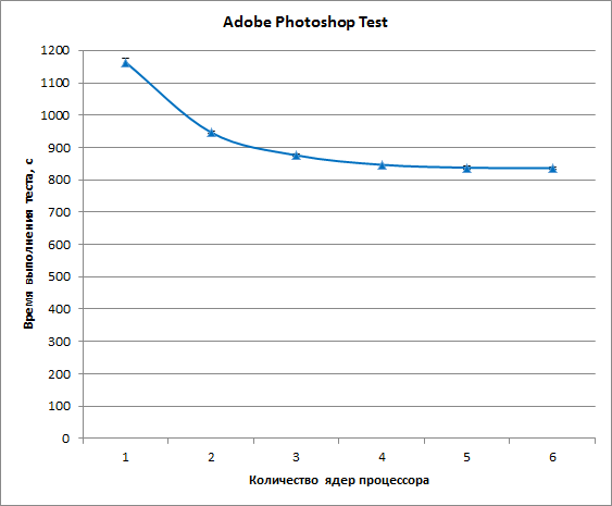 Как видно по результатам тестирования, даже в случае 6-ядерного процессора время выполнения теста получается довольно большим. Поэтому в окончательном варианте нашего теста по обработке фотографий на основе приложения Adobe Photoshop CC 2018 мы, скорее всего, уменьшим количество обрабатываемых фотографий до 50 штук.
