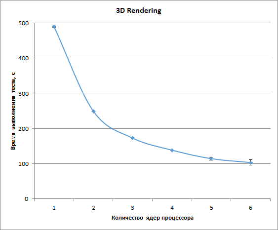 Теперь о результатах теста. Как в случае любого рендера, тест с рендерингом в Photoshop очень эффективно (на 100%) загружает все доступные ядра процессора. Результат этого теста, то есть время рендеринга, зависит исключительно от производительности процессора.