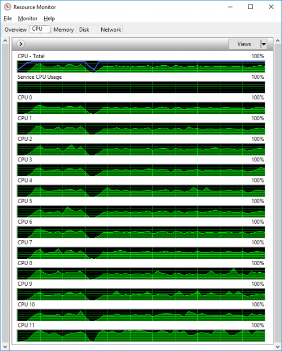 Наиболее продолжительным этапом является именно сохранение фотографий в формате JPEG и результат определяется преимущественно этим этапом. Причем, нельзя сказать, что на этапе сохранения фотографий реализуется высокая загрузка процессора. Тут все хорошо распараллеливается, но загрузка каждого отдельного ядра процессора очень низкая.