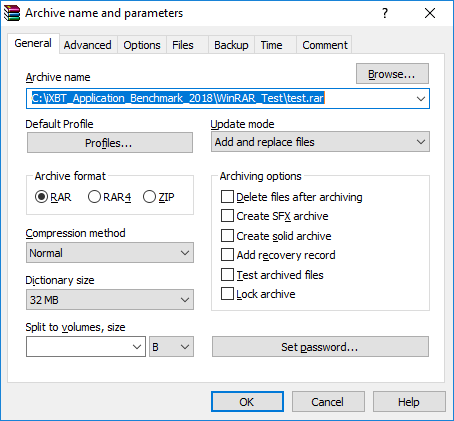 В новом тесте мы решили использовать более реалистичный сценарий. Используется формат сжатия RAR (кстати, формата RAR5 в новой версии нет) и метод компрессии Normal.