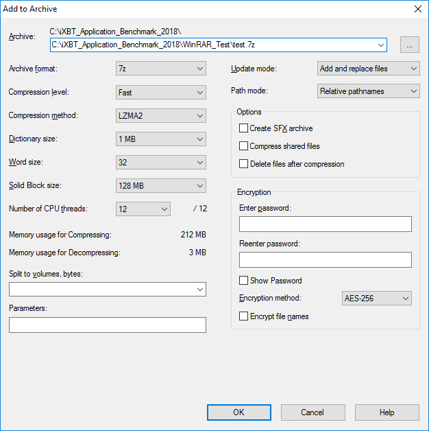 Отметим, что в настройках архиватора 7-Zip 18 можно указать количество используемых процессором потоков (Number of CPU threads). В нашем тесте всегда используется максимальное количество потоков. К примеру, для шестиядерного процессора с Hyper-Threading будет использоваться 12 потоков.