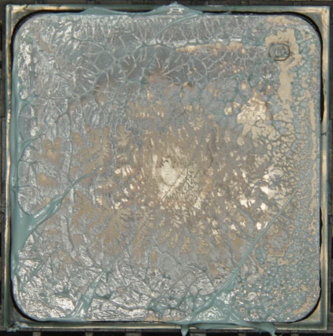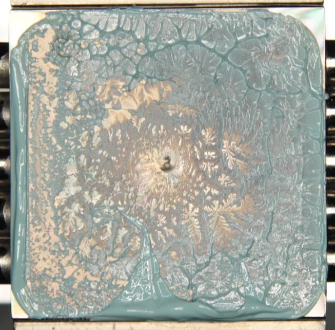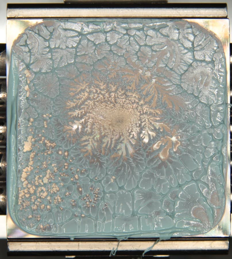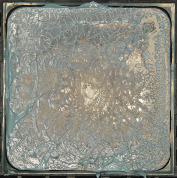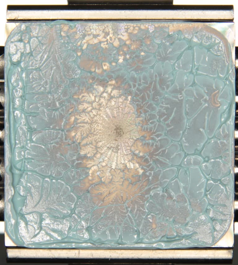 В тестах использовалась качественная термопаста другого производителя. Забегая вперед, продемонстрируем распределение термопасты после завершения тестов.