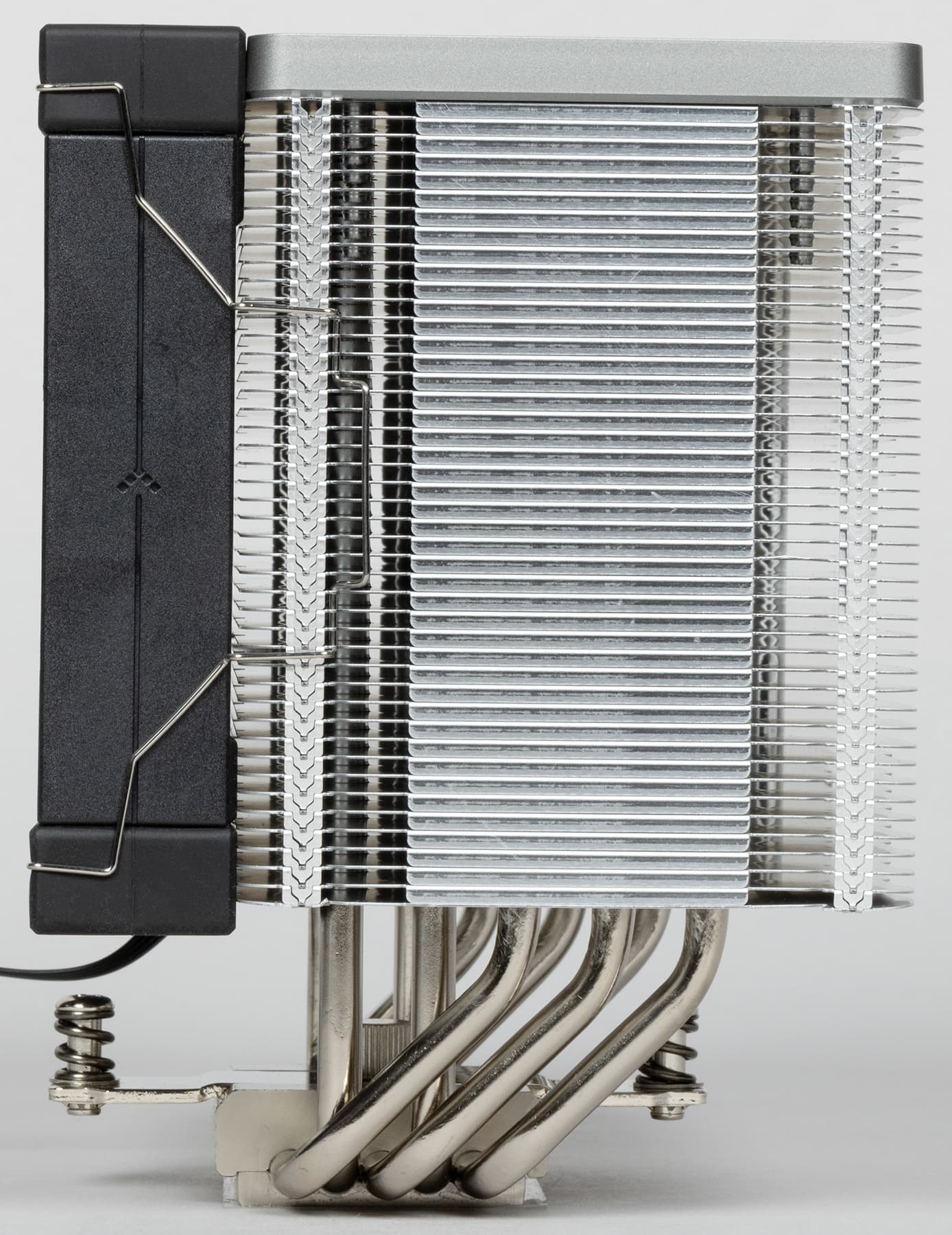 Кулер оснащен вынесенным радиатором, к которому тепло от теплосъемника передается по пяти тепловым трубкам диаметром 6 мм. Трубки и нижняя часть теплосъемника медные, никелированные. Верхняя часть теплосъемника изготовлена из алюминиевого сплава и также никелированная. Трубки к теплосъемнику припаяны. Подошва теплосъемника имеет очень мелкую концентрическую проточку и слегка отполирована. Поверхность подошвы немного выпуклая к центру с перепадом порядка 0,1-0,2 мм.
