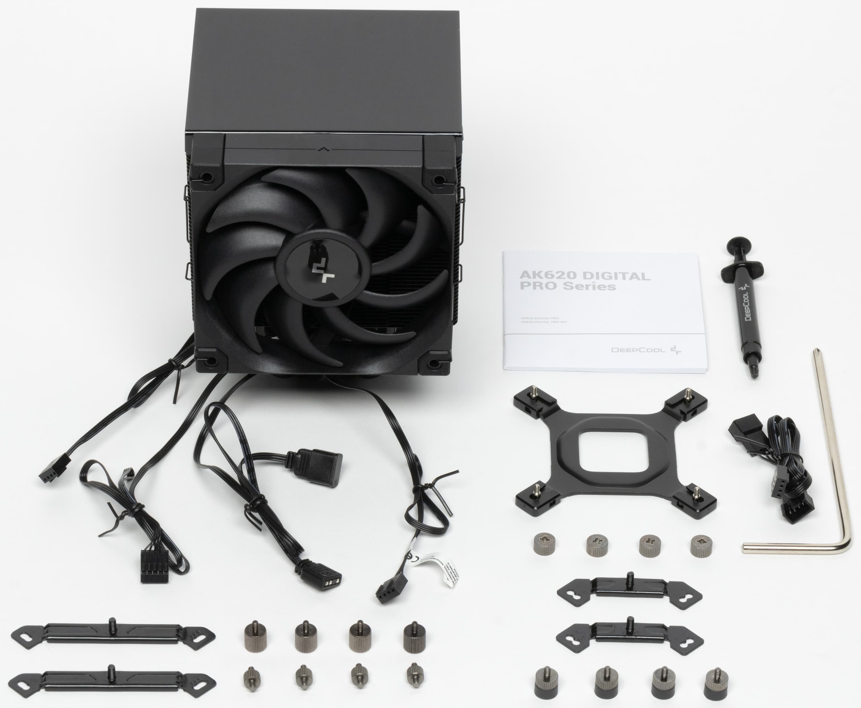 А дальше компания выпустила еще три версии AK620 — полностью черную, полностью белую и снабженную вентиляторами с подсветкой. Летом же позапрошлого года на рынок вышел DeepCool AK620 Digital. Но, несмотря на изменение названия, модель прекрасно укладывалась в рамки описанных выше косметических изменений — фактически, это специальная модификация черной (позднее появилась и белая) версии AK620 с цифровым дисплеем на макушке. Конструкция почти не изменилась, вентиляторы остались теми же, цена немножко подросла. Словом, это пополнение линейки, а не замена старым моделям.