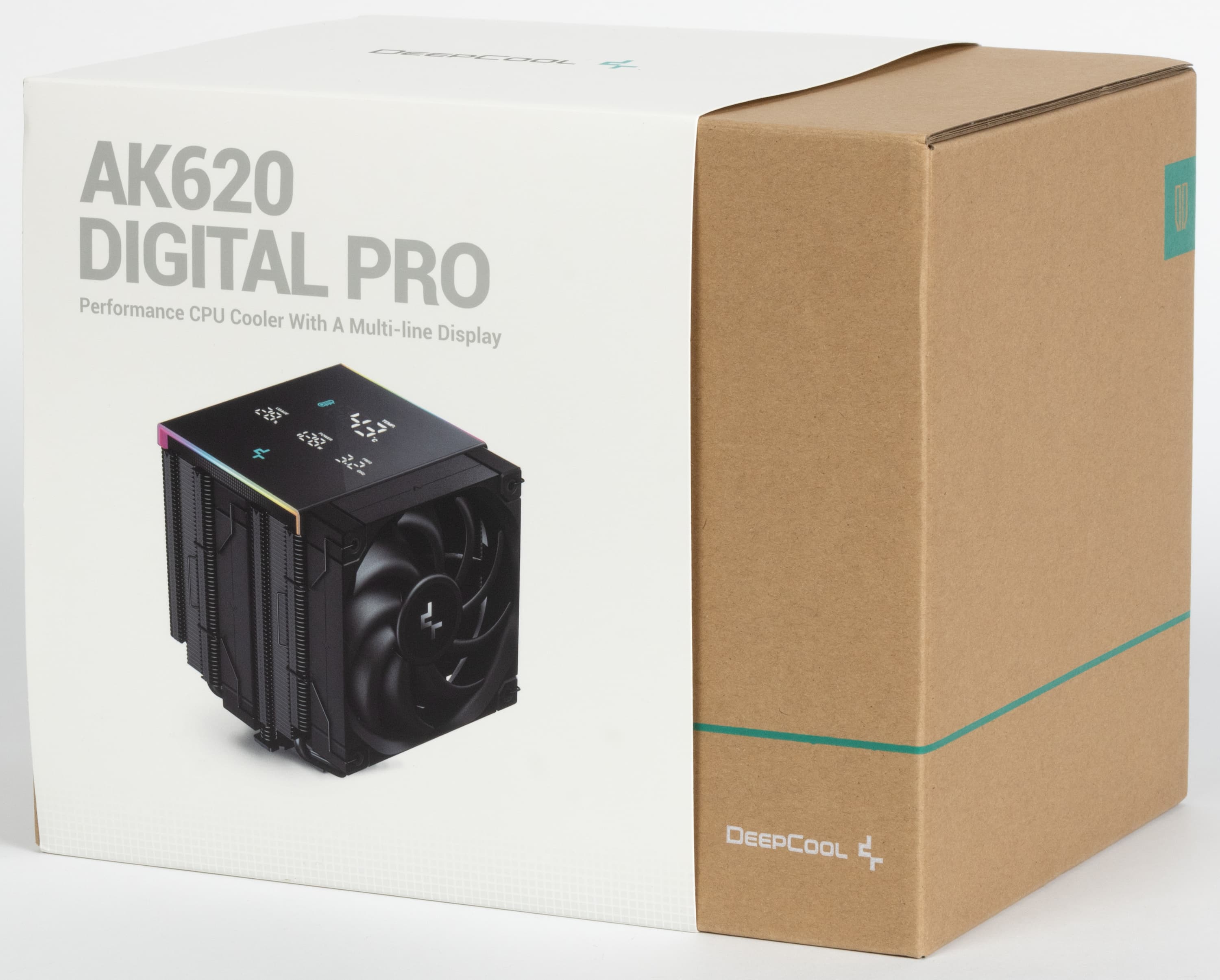 Таким же пополнением можно считать и нашего сегодняшнего героя — DeepCool AK620 Digital Pro. Инноваций здесь чуть-чуть больше, чем на предыдущем шаге — хотя бы новые вентиляторы и улучшенная технология тепловых трубок. Заодно немного улучшили цифровой дисплей: он отображает больше параметров, а то ранее одно число посерединке большой панели смотрелось слишком сиротливо. Но, естественно, это самые дорогие модели в линейке AK620. Если оригинальную базовую версию безо всяких «навесов» в Москве можно приобрести примерно за 7 тысяч рублей, то «крашеные» обойдутся уже в 8 тысяч, Digital — в 10 тысяч, а за Digital Pro нужно отдавать уже 12 тысяч рублей. Разница существенная — при том, что всё это модели в целом одного класса. Но претензии к DeepCool, как нам кажется, предъявлять не стоит. Вот если бы компания снимала с производства старые, более дешевые модели, заменяя их новыми, более дорогими — был бы повод. А большая линейка просто позволяет каждому выбрать именно то, что что ему нравится, и заплатить столько, сколько он считает нужным. Кому-то интереснее экономия, а внешний вид вообще не важен, поскольку корпус компьютера «глухой» — никаких проблем. Но мы сегодня посмотрим на то, что менее экономному покупателю может предложить старшая (и самая современная) модель линейки AK620.