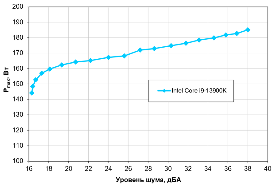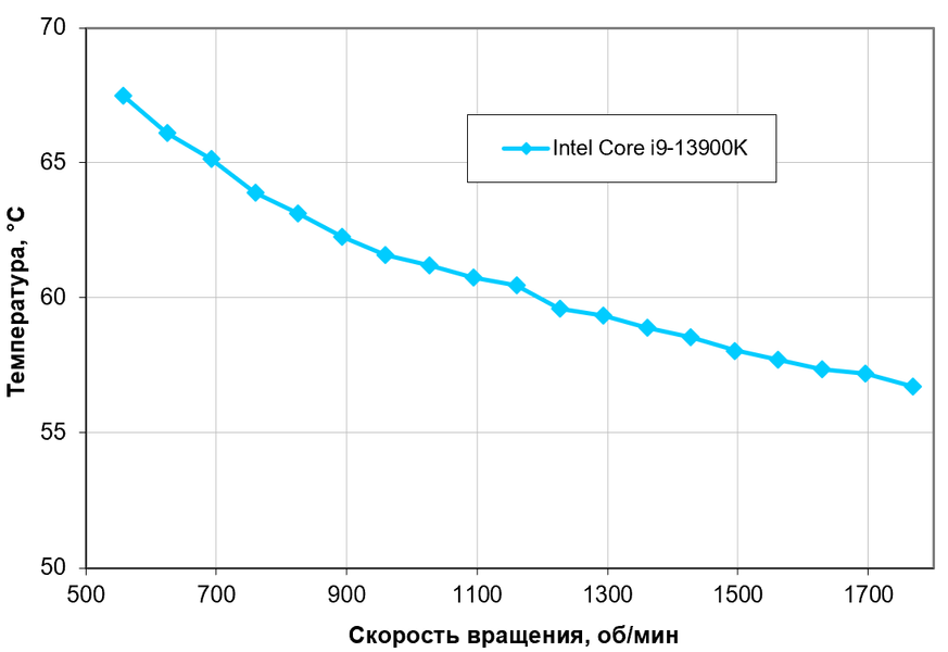 Полное описание методики тестирования приведено в соответствующей статье «Методика тестирования процессорных охладителей образца 2020 года». В данном тесте все ядра процессора Intel Core i9-13900K работали на частоте 3,7 ГГц.