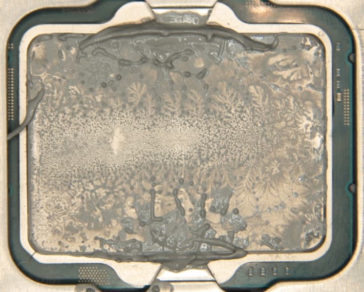 В тестах использовалась качественная термопаста другого производителя. Забегая вперед, продемонстрируем распределение термопасты после завершения тестов. На процессоре Intel Core i9-13900K: