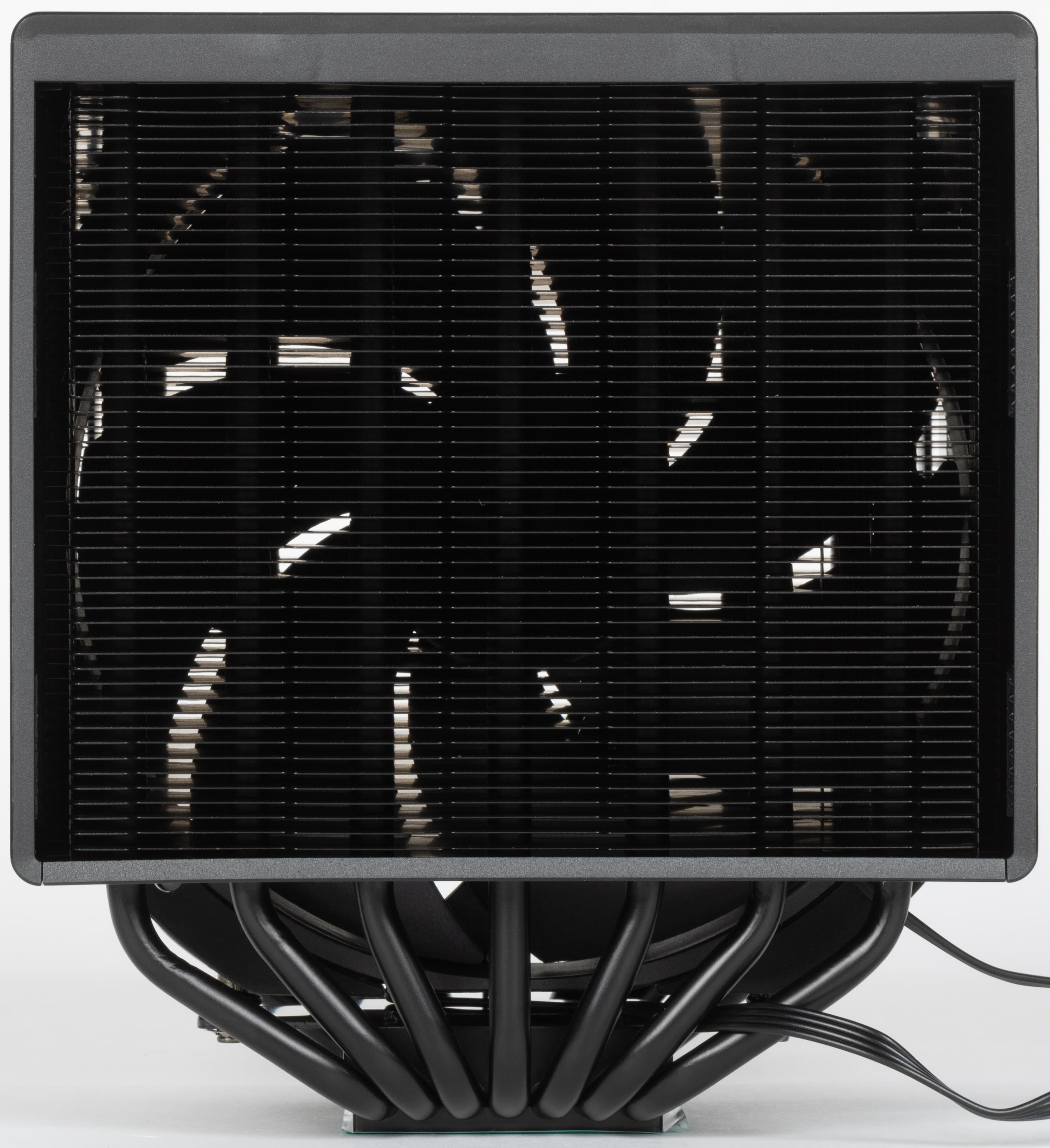 Кулер оснащен вынесенным двойным радиатором, к которому тепло от теплосъемника передается по семи тепловым трубкам диаметром 6 мм.