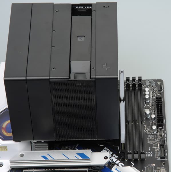 Габариты кулера довольно большие, но в случае большинства совместимых разъемов для процессоров Intel и всех совместимых для процессоров AMD все разъемы для оперативной памяти сверху радиатором не перекрываются. Пример для LGA1700:
