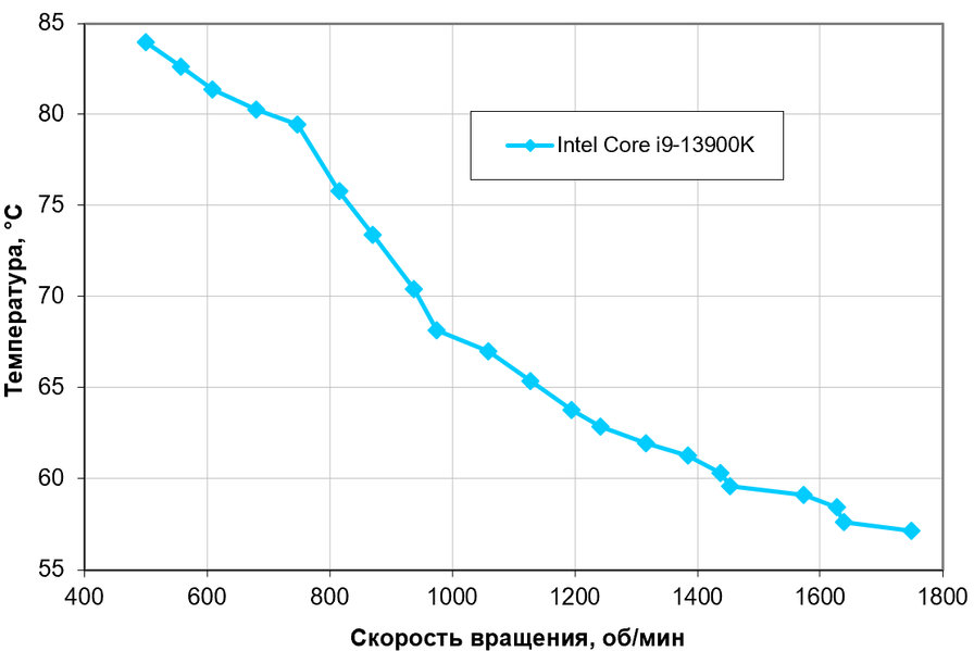 Полное описание методики тестирования приведено в соответствующей статье «Методика тестирования процессорных охладителей образца 2020 года». В данном тесте все ядра процессора Intel Core i9-13900K работали на частоте 3,7 ГГц.