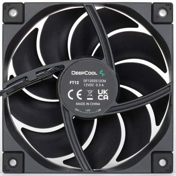 Вентилятор DeepCool FT12 получился универсальным — он хорошо работает как при низком, так и при высоком статическом давлении, то есть шумит меньше, а прокачивает воздуха больше, чем большинство из протестированных к данному моменту вентиляторов. Соответственно, его можно устанавливать, например, в качестве корпусного, как без противопылевых фильтров, так и с ними, или на радиаторы воздушных кулеров и жидкостных систем охлаждения. Отметим наличие ненавязчивой отключаемой подсветки, подчеркивающей наличие целых двенадцати катушек в моторе.