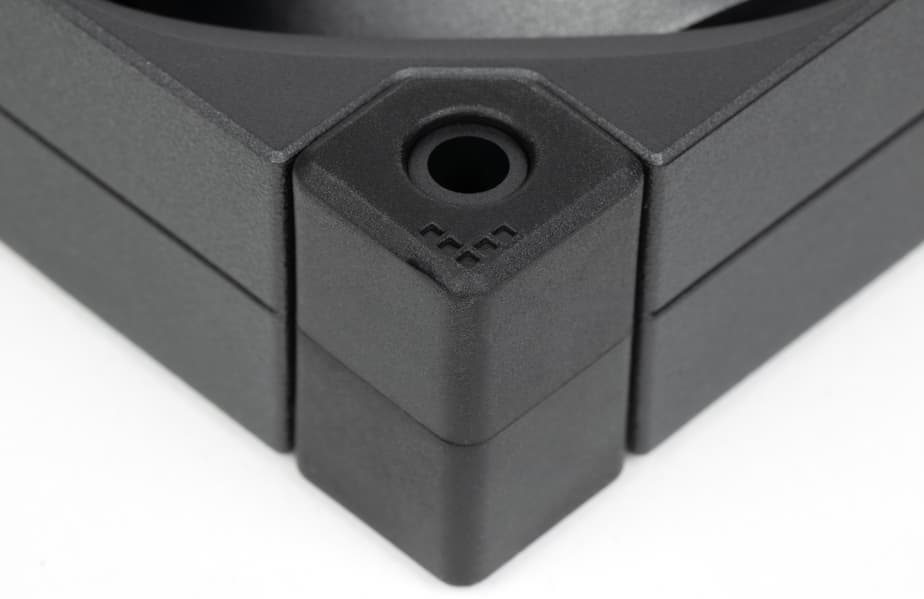 По замыслу разработчиков, это должно обеспечивать виброразвязку вентилятора от места крепления. Однако если прикинуть соотношение массы вентилятора к жесткости вставок, то становится понятно, что резонансная частота конструкции получается очень высокой, то есть практически никакой эффективной виброразвязки быть не может. Кроме того, гнезда, куда вворачиваются крепежные саморезы, являются частью рамки вентилятора, поэтому вибрация от вентилятора будет через саморезы без помех передаваться на то, на чем закреплен вентилятор. В итоге, такую конструкцию можно рассматривать только в качестве элемента дизайна вентилятора.