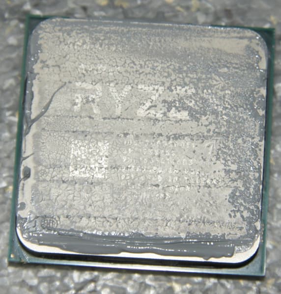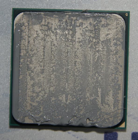 Плоская подошва теплосъемника дает шанс на то, что этот кулер как-то справится и с охлаждением чиплетового процессора, поэтому мы провели тесты с процессором AMD Ryzen 9 3950X. Распределение термопасты после этих тестов на процессоре:
