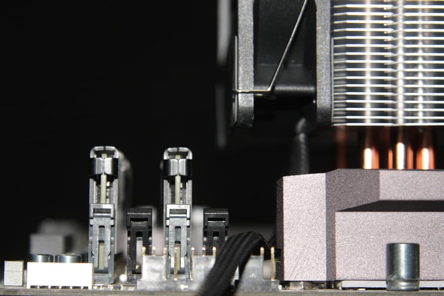Кулер относительно компактный. Все разъемы для оперативной памяти остаются доступными для установки модулей памяти. Наглядный пример: