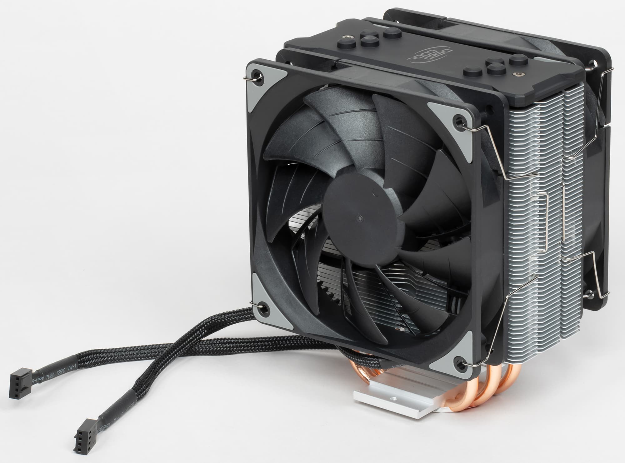 Наше тестирование показало, что кулер Deepcool Gammaxx 400 EX можно использовать с процессорами типа AMD Ryzen 7 1800X, имеющими реальное потребление порядка 125 Вт, при этом даже с учетом возможного повышения температуры внутри корпуса до 44 °C будет сохраняться очень низкий уровень шума — 25 дБА и ниже. В случае чиплетного процессора AMD Ryzen 9 3950X эффективность кулера заметно ниже, и для соблюдения указанных выше условий максимальная мощность, потребляемая процессором, должна быть не выше 116 Вт. При снижении температуры охлаждающего воздуха и/или менее жестких требованиях к уровню шума пределы мощности можно существенно увеличить. К достоинствам кулера следует отнести аккуратный дизайн, удобную установку и то, что он не перекрывает слоты для модулей памяти.