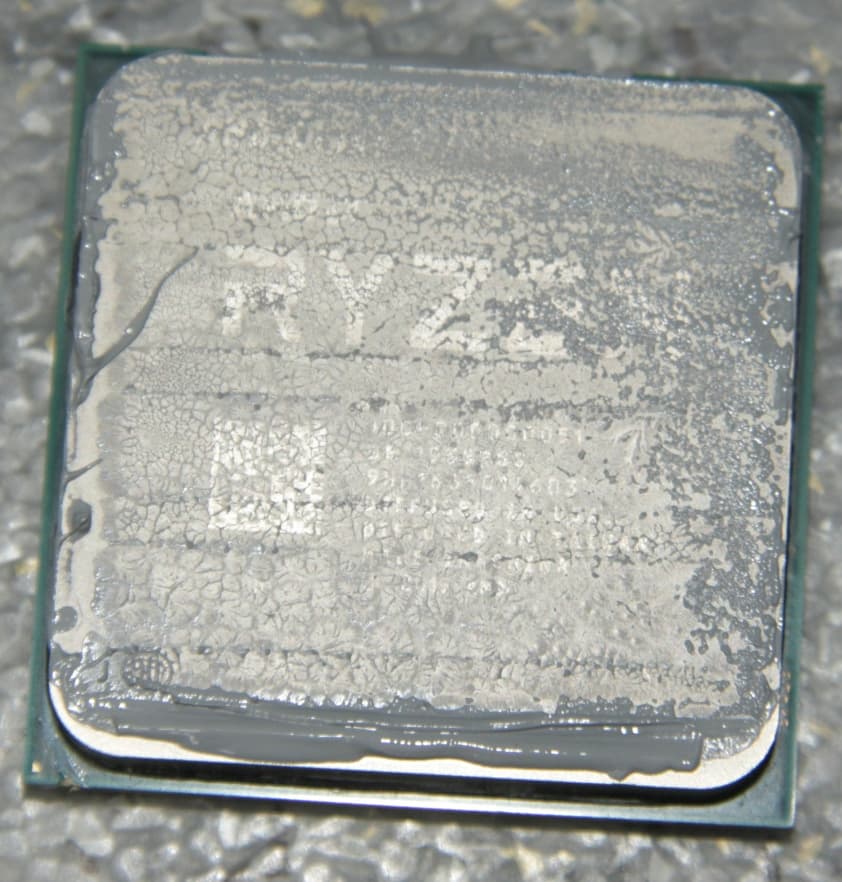 В данном случае слой термопасты также имеет очень небольшую толщину на большей части крышки процессора.