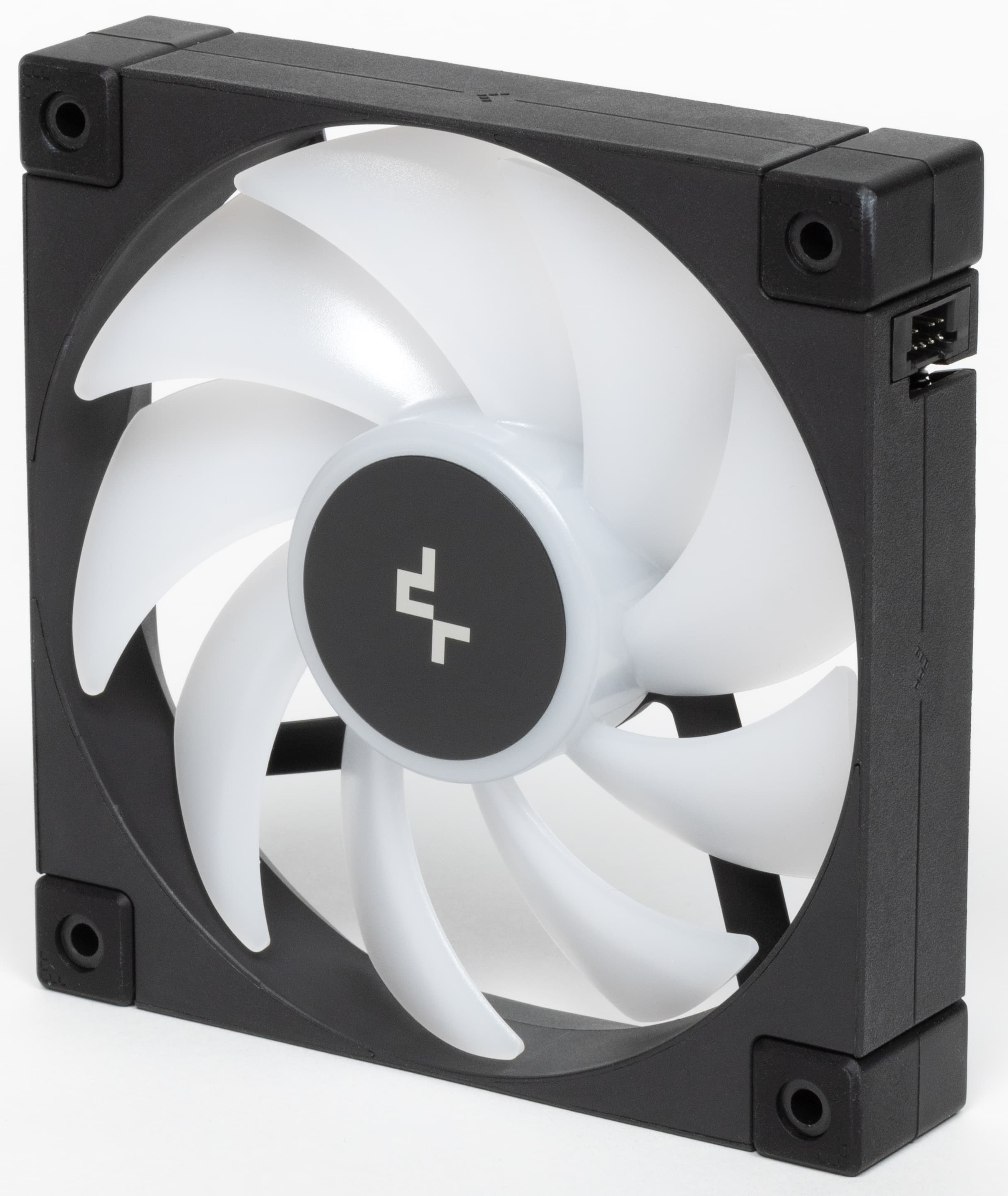Крыльчатка вентилятора изготовлена из белого полупрозрачного пластика. На статоре вентилятора по окружности размещены несколько ARGB-светодиодов, которые подсвечивают крыльчатку изнутри.