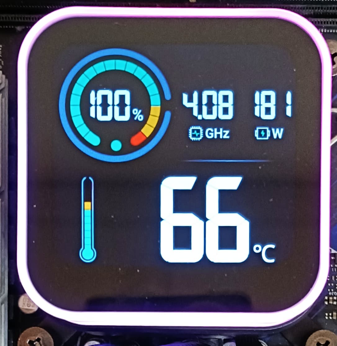 Это позволяет подобрать правильное положение крышки, вне зависимости от того, как ориентирована помпа. При необходимости крышку можно просто снять и повернуть, не разбирая всю конструкцию. Да и сам по себе дисплей выглядит симпатичнее, чем в LD360, где были просто три трехзначных числа — мощность, температура и загрузка процессора. При обновлении к этому добавилась еще тактовая частота, а система подачи информации изменилась в принципе, став куда более наглядной. Ключевое значение, пожалуй что, имеет температура — но именно ее мы теперь сразу и выделяем даже при беглом взгляде, не выискивая нужное среди трех однообразных чисел.