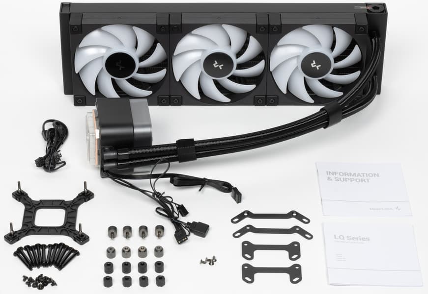 Повторим: такое положение дел является нормой для сегодняшнего рынка СЖО. Производители вынуждены регулярно выпускать новые модели, но не имеют возможности делать их существенно отличающимися от предыдущих. Причем на рынке одновременно присутствует сразу несколько моделей каждого производителя. Так, например, на момент подготовки обзора в DNS были доступны четыре трехсекционных СЖО DeepCool (одна из них — в двух цветах) под TDP 300 Вт — и это еще до поступления туда LQ360. Стоит ли его ждать — решать придется самостоятельно. Мы же просто протестируем новинку модельного ряда DeepCool. Но сразу предупреждаем, что многие детали будут повторением обзора LD360, поскольку они и не изменились вовсе.