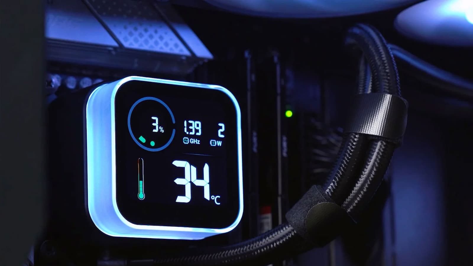 Стоит отметить, что несколько адресуемых RGB-светодиодов подсветки окантовки работают сразу — им достаточно подключения к соответствующим разъемам. Управление подсветкой совместимо с утилитами Asus, ASRock, Gigabyte и MSI, а также Razer Chroma. А вот для отображения информации на дисплее требуется обязательная установка утилиты DeepCool Digital и подключение СЖО в том числе и к гребенке USB 2.0 на системной плате, разумеется. Насколько это необходимо — решать придется самостоятельно. Понятно, что, сидя за компьютером, проще всю ту же информацию (да и не только ее) в любой программе мониторинга и посмотреть. Но... если вообще с подсветкой связываться (а кроме ярых нелюбителей, у нее давно уже есть и свои поклонники), то пусть уж всё не только блестит и переливается, как нам кажется. А реализация — разумный компромисс: когда уже хорошо, но еще недорого. Понятно, что технически DeepCool Mistique 360 на голову выше — там полноценный графический дисплей с разрешением 640×480 точек, где потенциально можно «нарисовать» что угодно, еще и самостоятельно меняющий ориентацию, благодаря встроенному гироскопу. Но такое решение и заметно дороже, а основные потребительские характеристики не улучшает. Проблемой же LD360 можно считать слишком жесткую привязку экрана к помпе, что и стоило исправить в первую очередь. Вот и исправили.