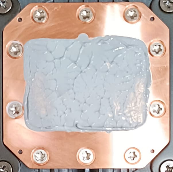 Забегая вперед, продемонстрируем распределение термопасты после завершения всех тестов. На процессоре Intel Core i9-13900K: