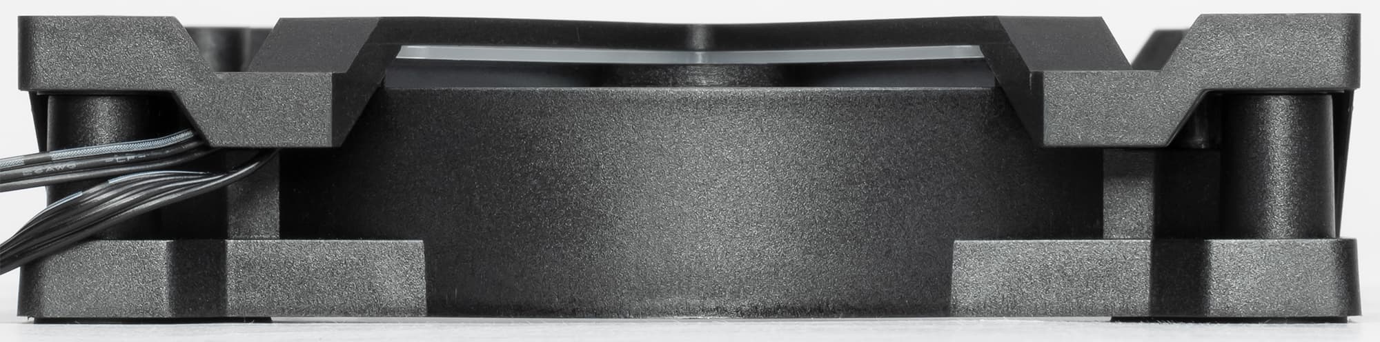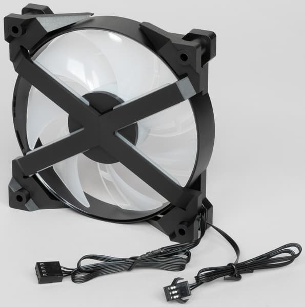 Рамка вентилятора, изготовленная из прочного черного пластика, составная: на собственно рамке закреплена крестовина из такого же материала. Под крестовиной находятся вставки из белого полупрозрачного пластика. Из такого же материала изготовлена крыльчатка вентилятора. Вставки на крестовине рассеивают свет от многоцветных светодиодов. Частично свет рассеивает и центральная часть крыльчатки.