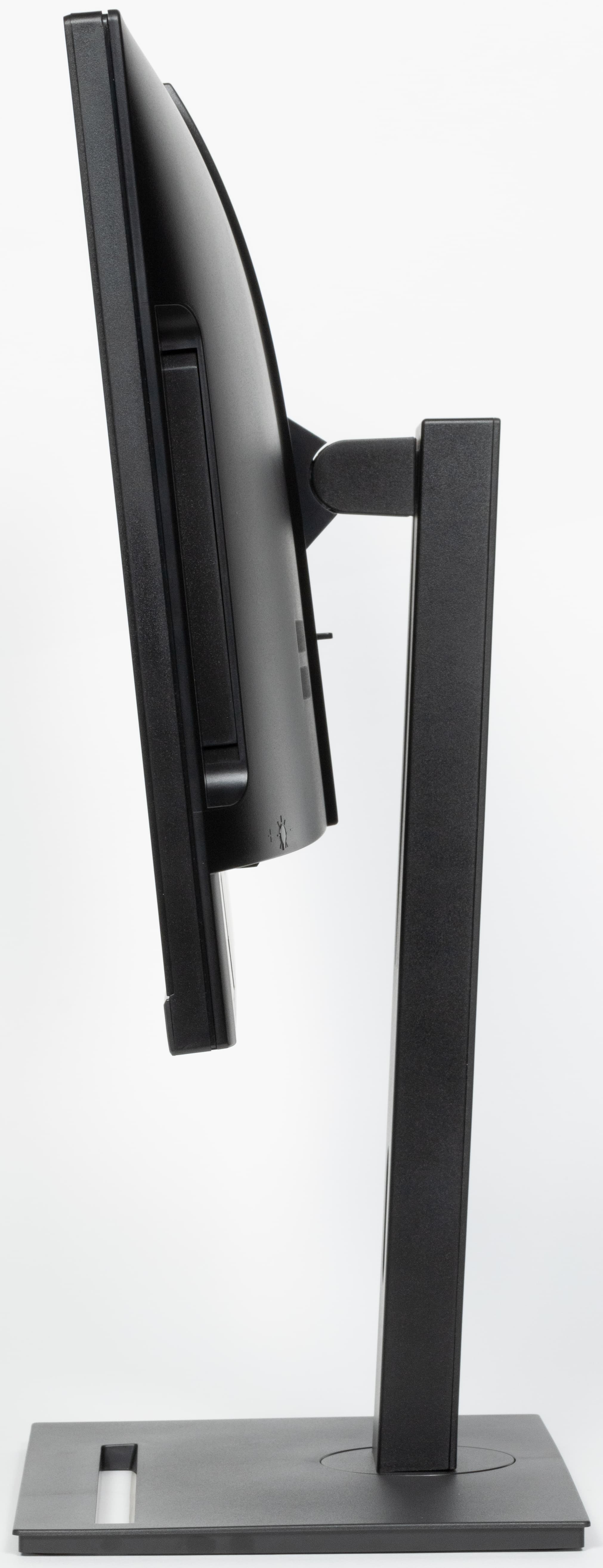 Внешняя поверхность матрицы черная жесткая и полуматовая (легкая зеркальность присутствует). Какие-либо специальные антибликовые покрытия или фильтр отсутствуют, нет и воздушного промежутка. Экран не сенсорный. Максимальное значение яркости составило 274 кд/м² (в центре экрана на белом фоне). Этого хватит для комфортной работы в типичном офисном помещении. Работа на улице за этим ПК по очевидным причинам не предполагается. Если настройка яркости равна 0%, то яркость снижается до 76 кд/м². В полной темноте такая минимальная яркость экрана кому-то может показаться высоковатой.
