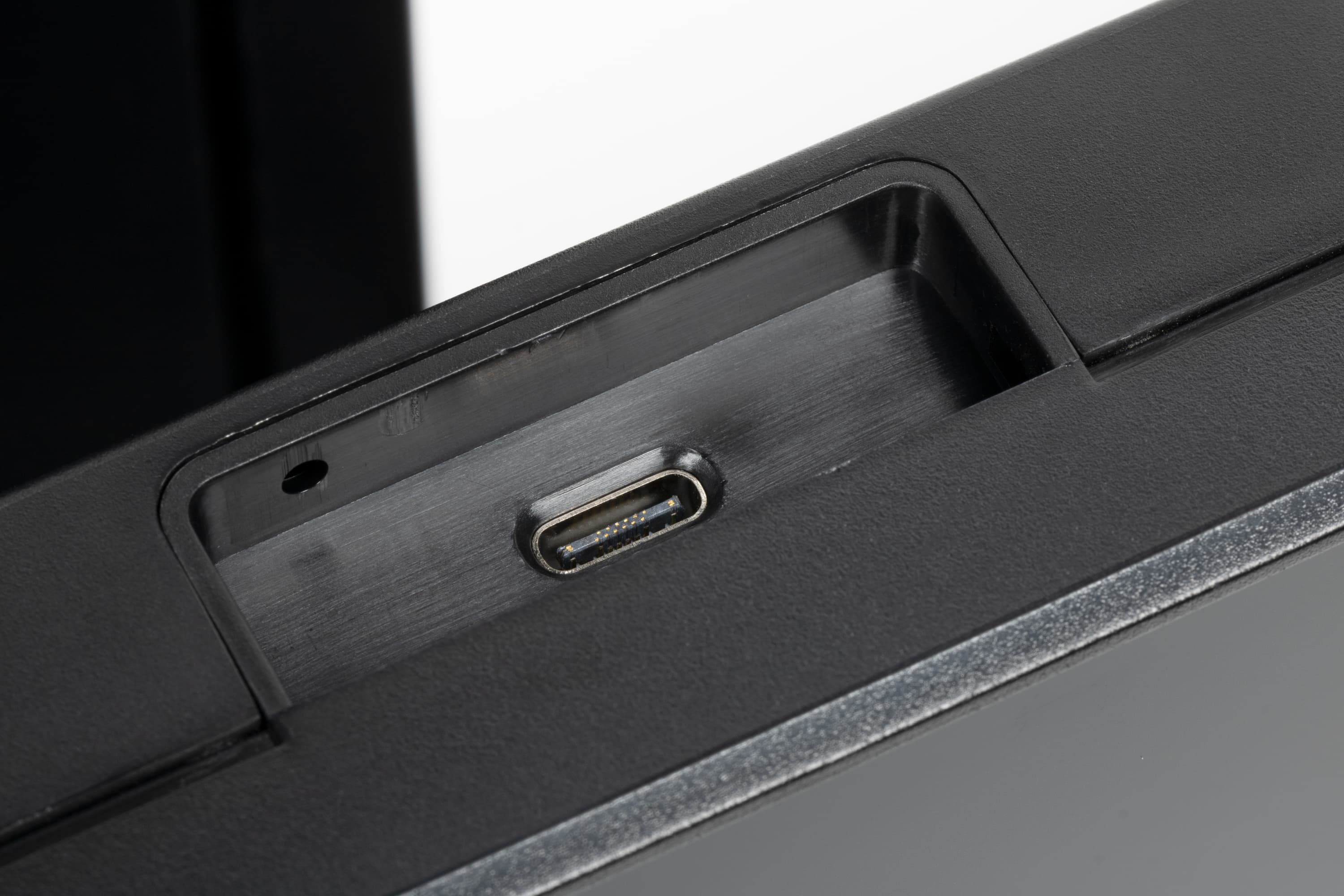 ...и в нише на верхней грани моноблока. Соответственно, если камера не нужна, ее можно вообще не подключать, а разъем использовать для других целей: это абсолютно стандартный USB 2.0 Type-C. Разумеется, можно подключать камеру лишь по необходимости. Ну а если она нужна часто, то проще оставить ее на постоянку, благо шторка у штатной камеры присутствует.