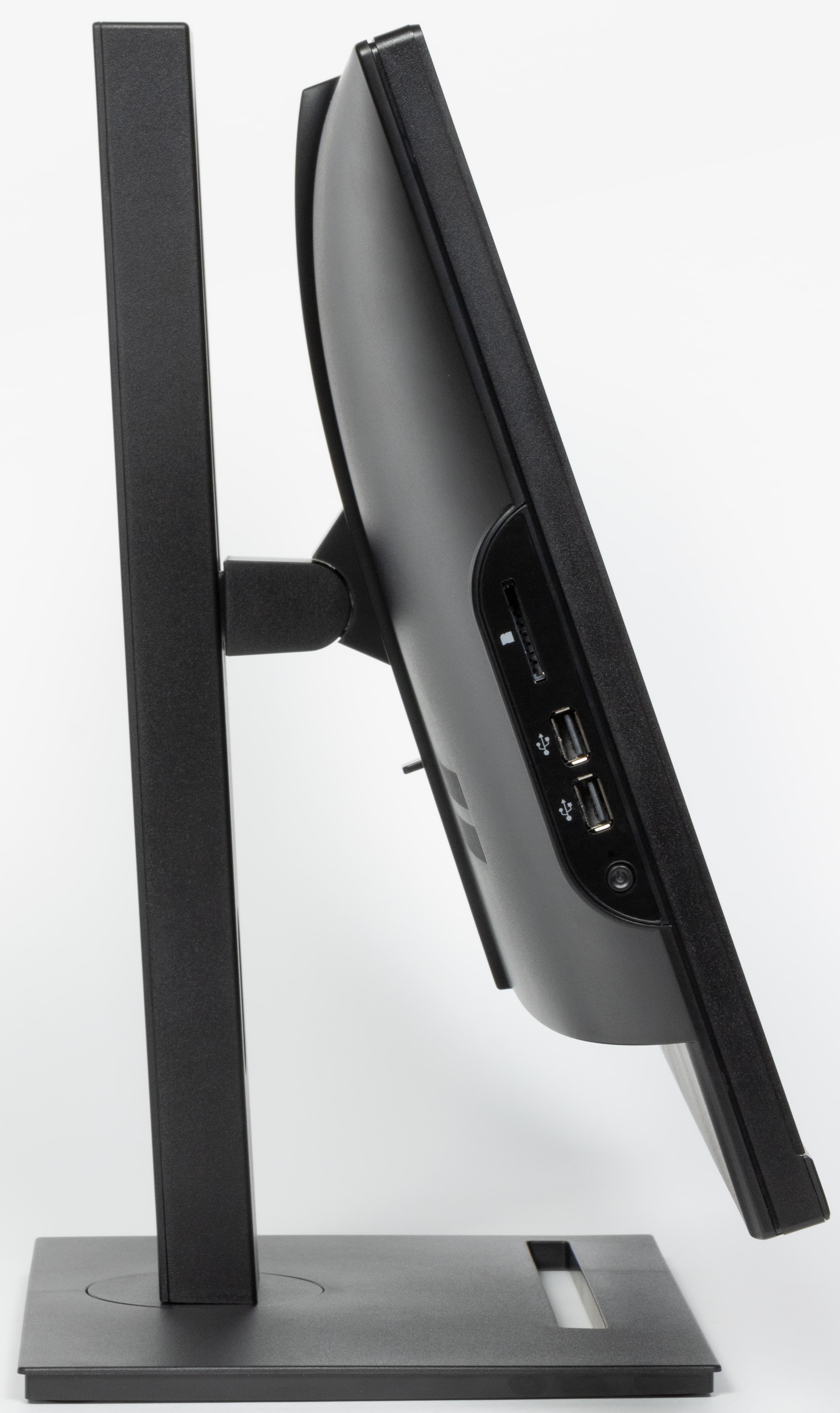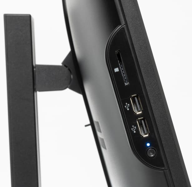 При этом понятно, что особых сложностей с расширением ассортимента у производителя не было: материнская плата стандартного форм-фактора и универсальное шасси позволяют менять конфигурации быстро. К сожалению, мы уже не в первый раз наблюдаем некоторое рассогласование первого и второго — когда встроенные порты USB 3.0 «тратятся» на разъем USB 2.0 Type-C для веб-камеры, а пара портов на левом боку и картовод там же «висят» на USB 2.0. А ведь всего-то одну платку надо в шасси поменять, но с этим никто возиться не стал. Жаль: могло бы получиться лучше без заметных затрат. Впрочем, конфигурация вообще принесена в жертву экономии. Штатный SSD на 256 ГБ — еще ладно, но всего один модуль оперативной памяти для процессора с относительно мощным GPU — перебор. Причем модуль еще и DDR4-2666, то есть его лучше бы поменять, а не дополнять вторым. Понятно, что в офисном окружении ни то, ни другое мешать особо не будет, однако для такого применения и более дешевые модели линейки AiO 23i подходят, а моноблоки AiO 23А всё же рассчитаны на несколько большее.
