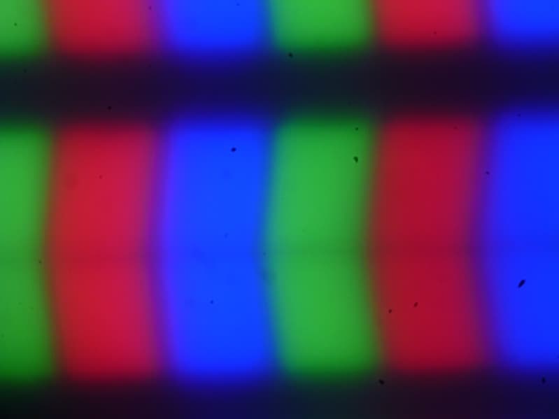 В этом моноблоке используется матрица типа IPS. Из-за матовой поверхности на микрофотографиях экрана характерная для IPS структура субпикселей едва угадывается (черные точки — это пыль на матрице фотоаппарата):