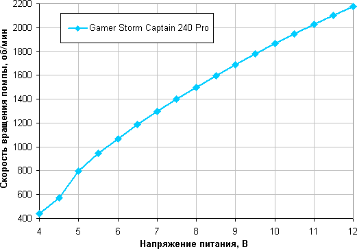 Приведем также зависимость скорости вращения помпы от напряжения питания: