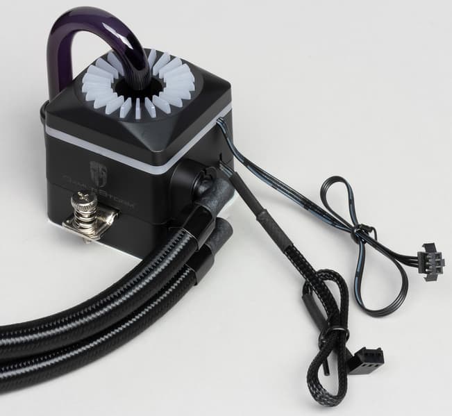На основе системы жидкостного охлаждения Gamer Storm Captain 240 Pro можно создать условно бесшумный компьютер, оснащенный процессором типа Intel Core i7-6900K (LGA 2011, Broadwell-E) с тепловыделением порядка 170 Вт максимум, и это даже с учетом возможного повышения температуры внутри корпуса до 44 °C и при условии долговременной максимальной нагрузки. Эта система также может охлаждать процессоры AMD и Ryzen Threadripper в частности, и она, с некоторыми оговорками, справится даже с охлаждением такого горячего процессора, как 2990WX, но, конечно, уже на пределе своих возможностей. Адресуемая многозонная RGB-подсветка помпы и вентиляторов поможет украсить внутреннее пространство системного блока. Отметим хорошее качество изготовления, оплетку шлангов и кабеля питания от помпы (как минимум помогающую сохранить единый стиль оформления внутренностей компьютера), а также то, что подсветка допускает использование контроллера из комплекта или любого другого, совместимого с трехпроводной системой ARGB, или ее можно подключить к подходящему разъему на системной плате. Отдельного упоминания заслуживает очень тихая в работе помпа.