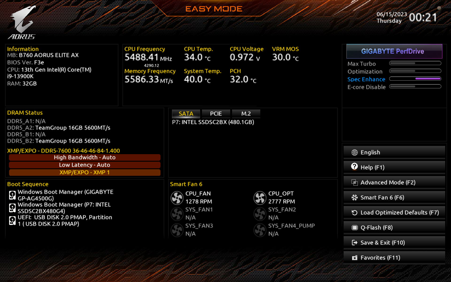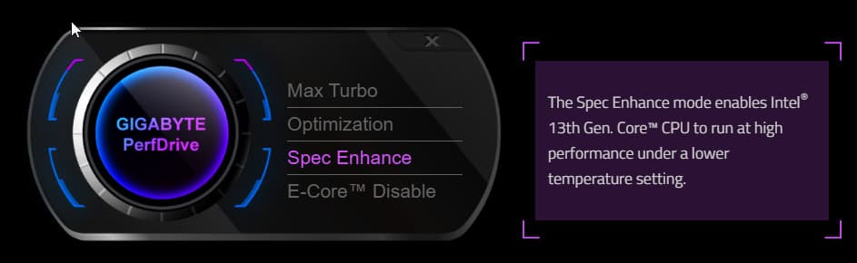 Ранее в разделе настроек BIOS я отмечал, что у Gigabyte имеется новый параметр настроек – PerfDrive.