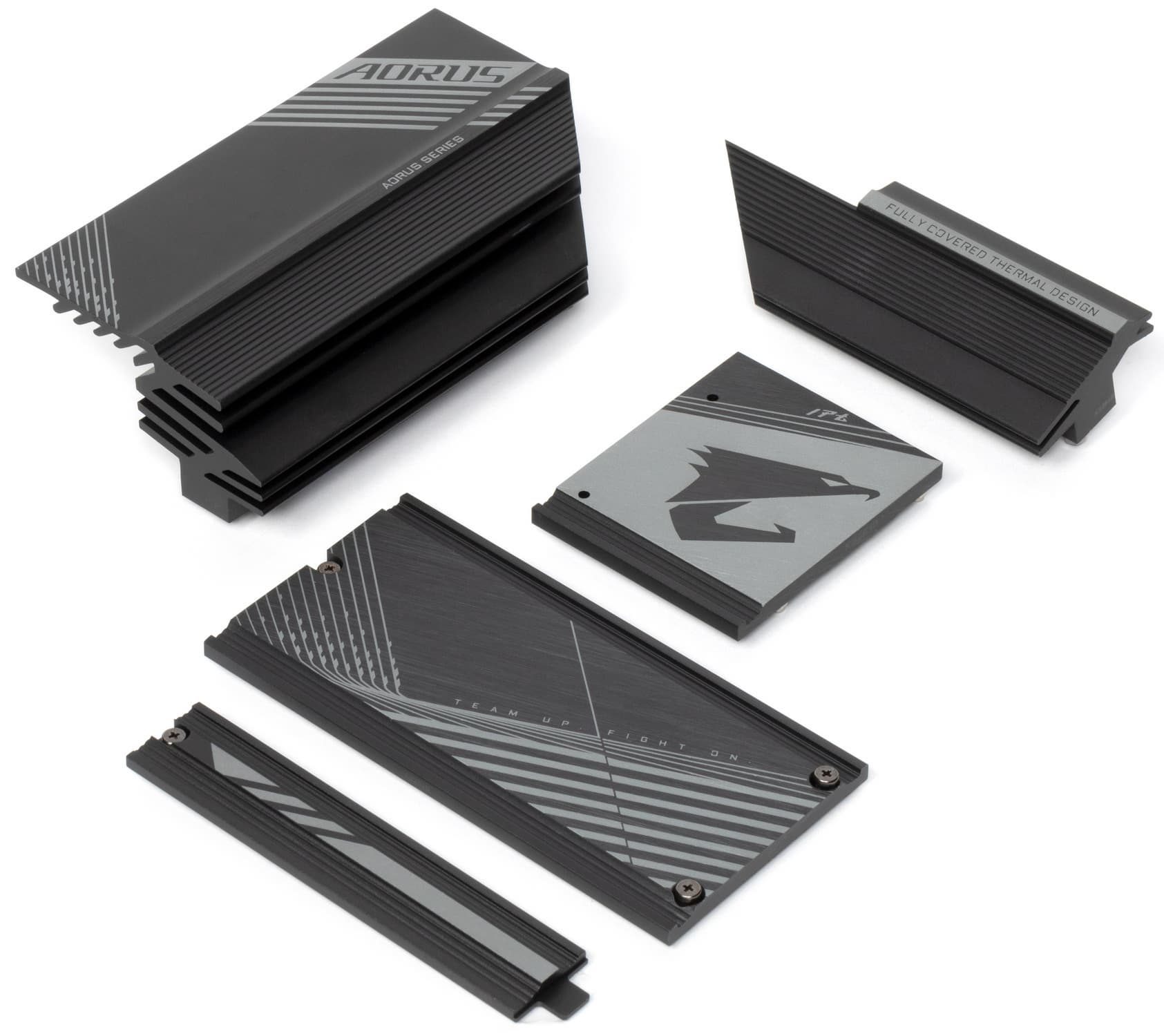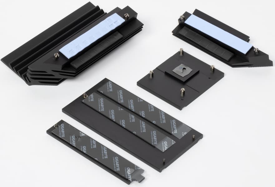 Все M.2 слоты имеют радиаторы. Верхний M2A_CPU обладает отдельным радиатором, когда как остальные слоты M.2 имеют общий радиатор.