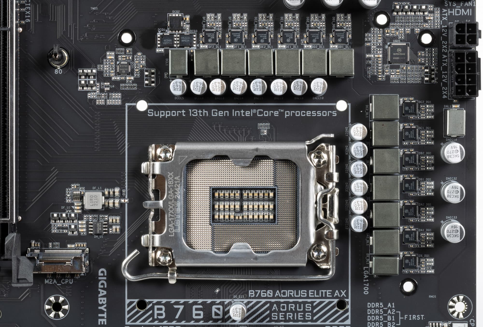 Материнская плата Gigabyte B760 Aorus Elite AX поддерживает процессоры Intel Core 12/13-го поколений, выполненные под разъем (сокет) LGA1700.