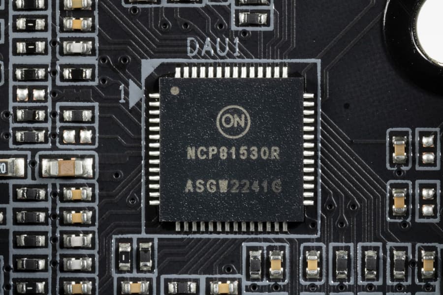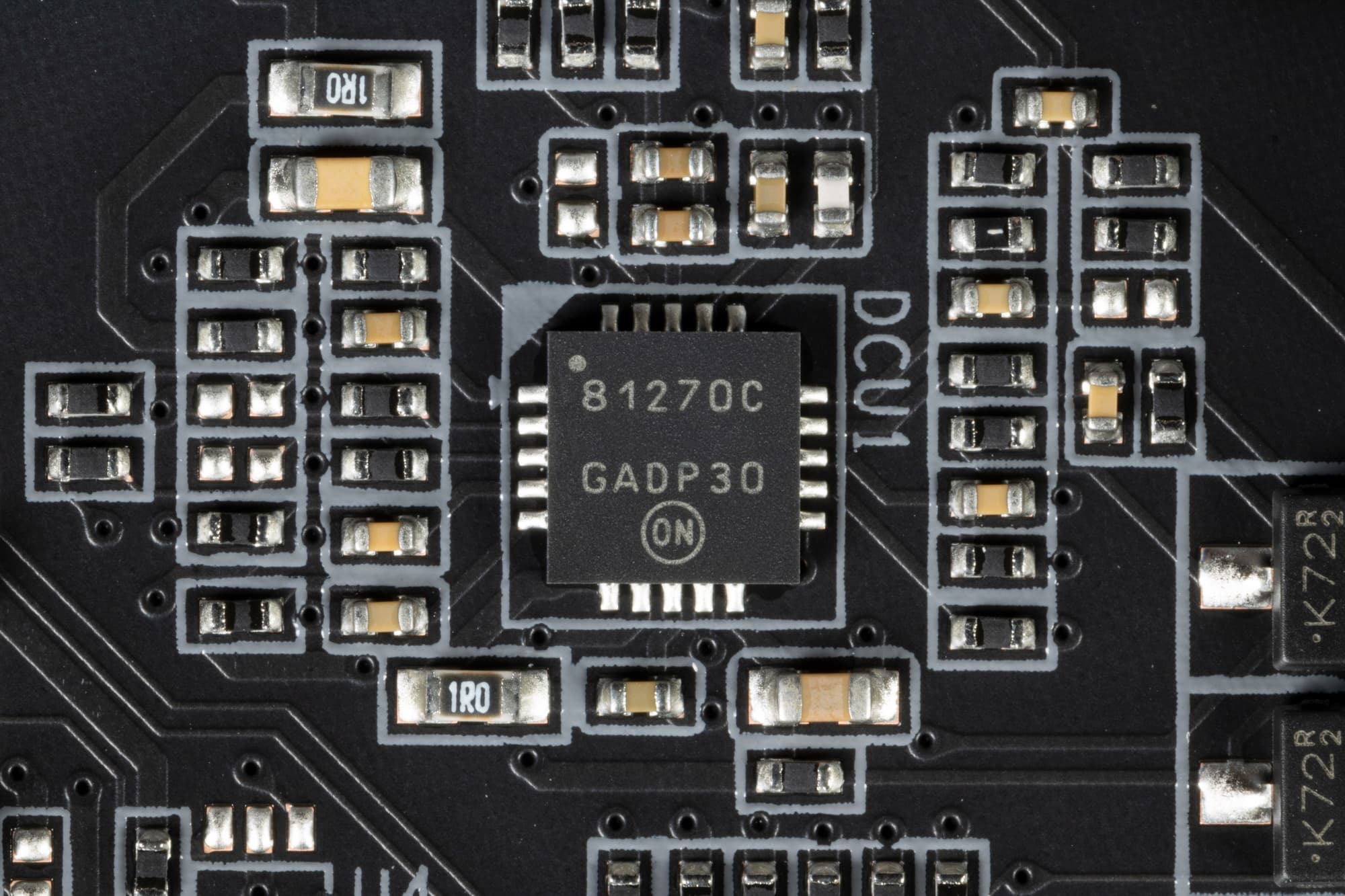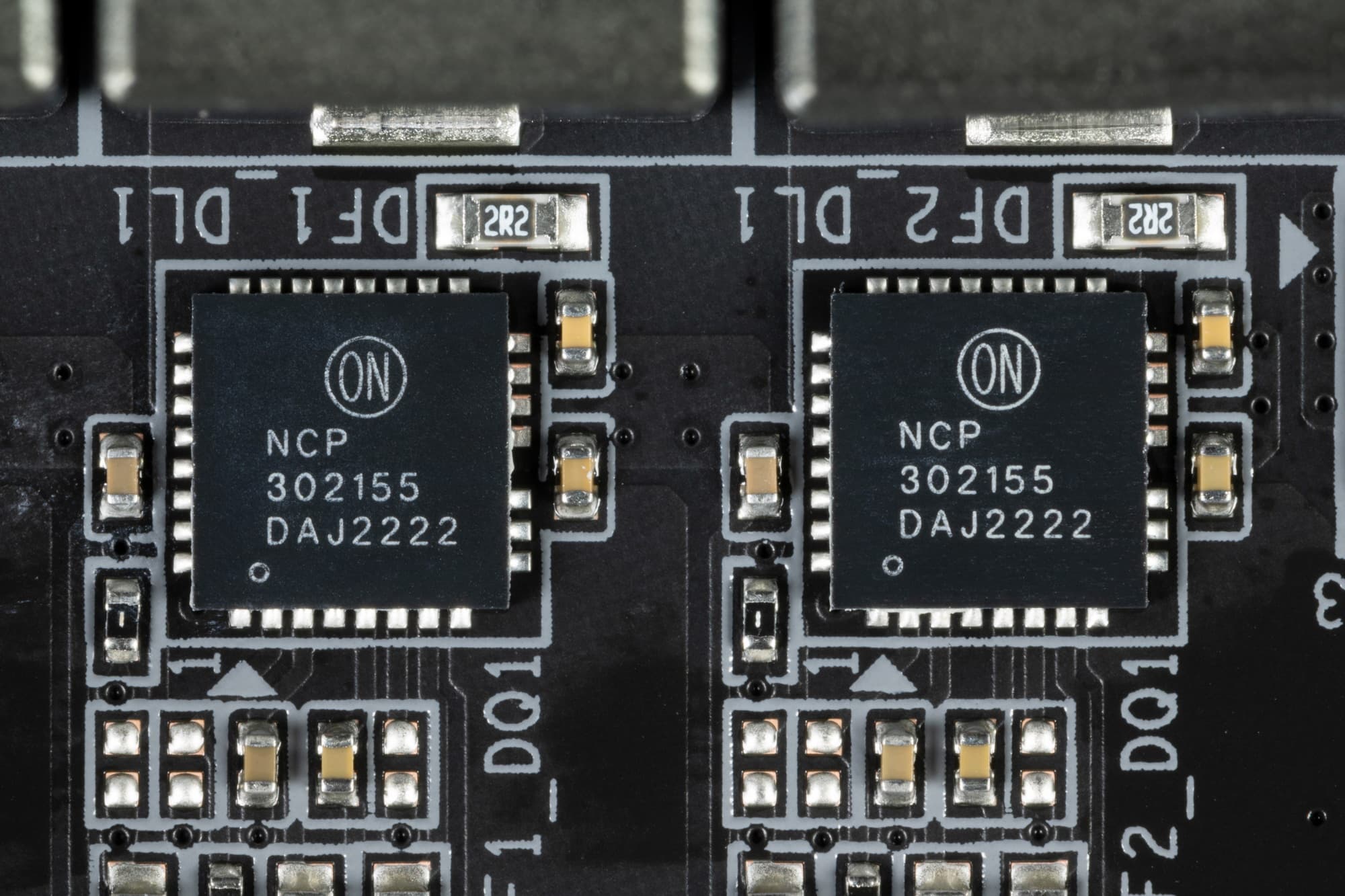 Каждый канал фазы VCore и iGPU имеет суперферритовый дроссель и DrMOS NCP302155 (55A) от On Semi.