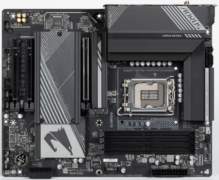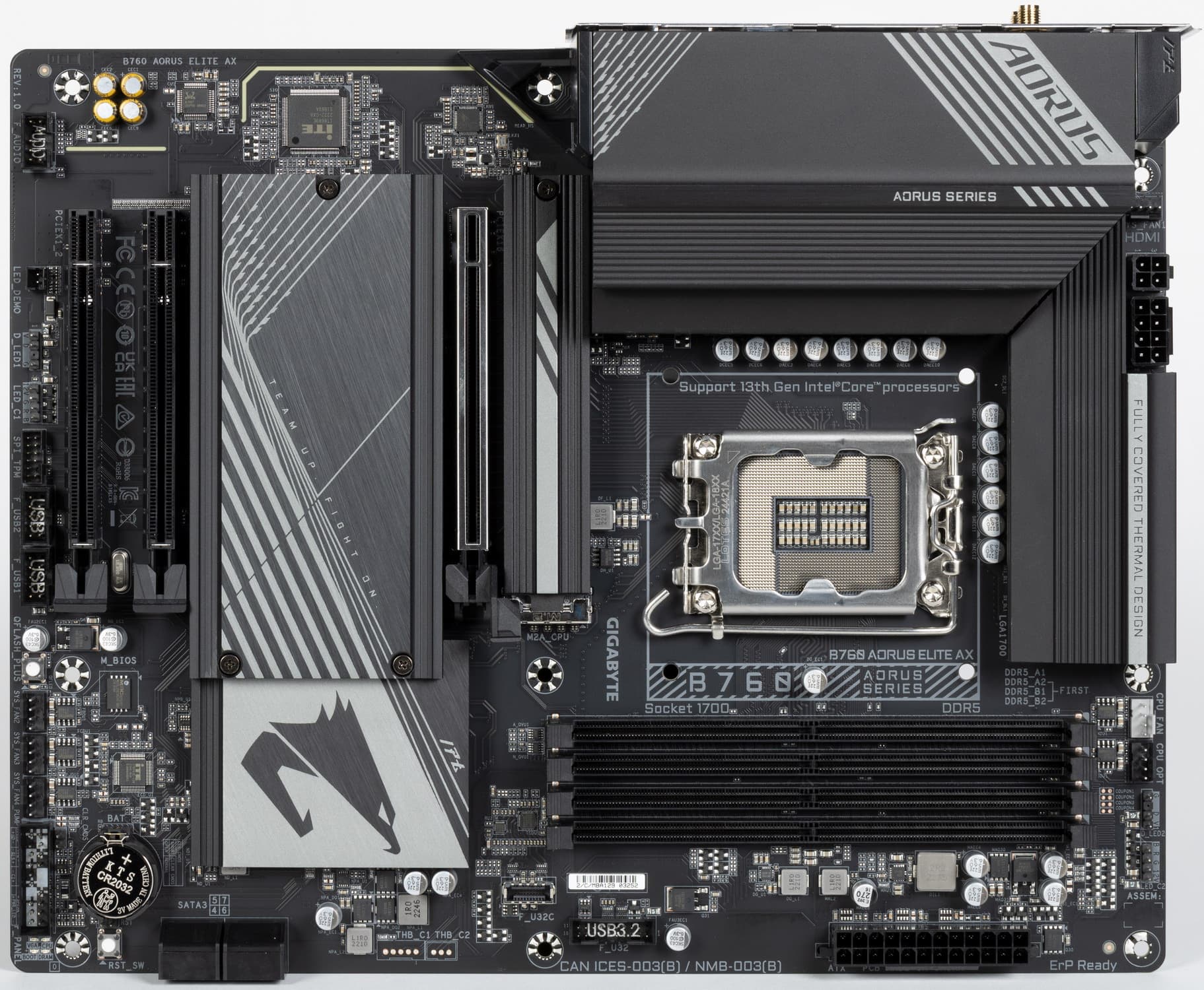Gigabyte B760 Aorus Elite AX — представитель среднебюджетного семейства материнских плат на чипсете Intel B760 со стоимостью от 16 тысяч рублей на момент публикации обзора. Это не самая дешевая модель на B760, который, вообще говоря, является бюджетным чипсетом в своей линейке, однако она имеет серьезную поддержку периферии, сравнимую с более дорогими решениями.