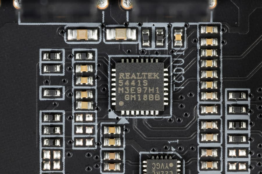 Мы знаем, что уже достаточно давно в большинстве современных материнских платах звуком заведовал аудиокодек Realtek ALC1220. В целом обеспечивает вывод звука по схемам до 7.1 с разрешением до 24 бит / 192 кГц. Мы видели уже и ALC4082 того же производителя с улучшенными характеристиками 32 бит / 384 кГц. Однако в данном случае мы видим возврат к старому ALC897.
