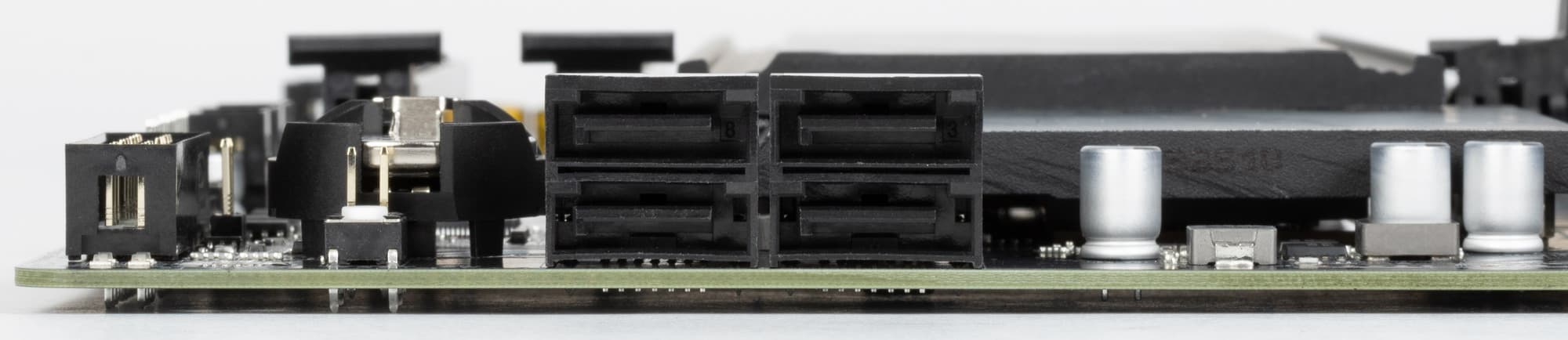 Всего у платы 4 разъема Serial ATA 6 Гбит/с + 3 слота для накопителей в форм-факторе M.2. Все порты SATA 4,5,6,7 реализованы через чипсет B760 и поддерживают создание RAID.