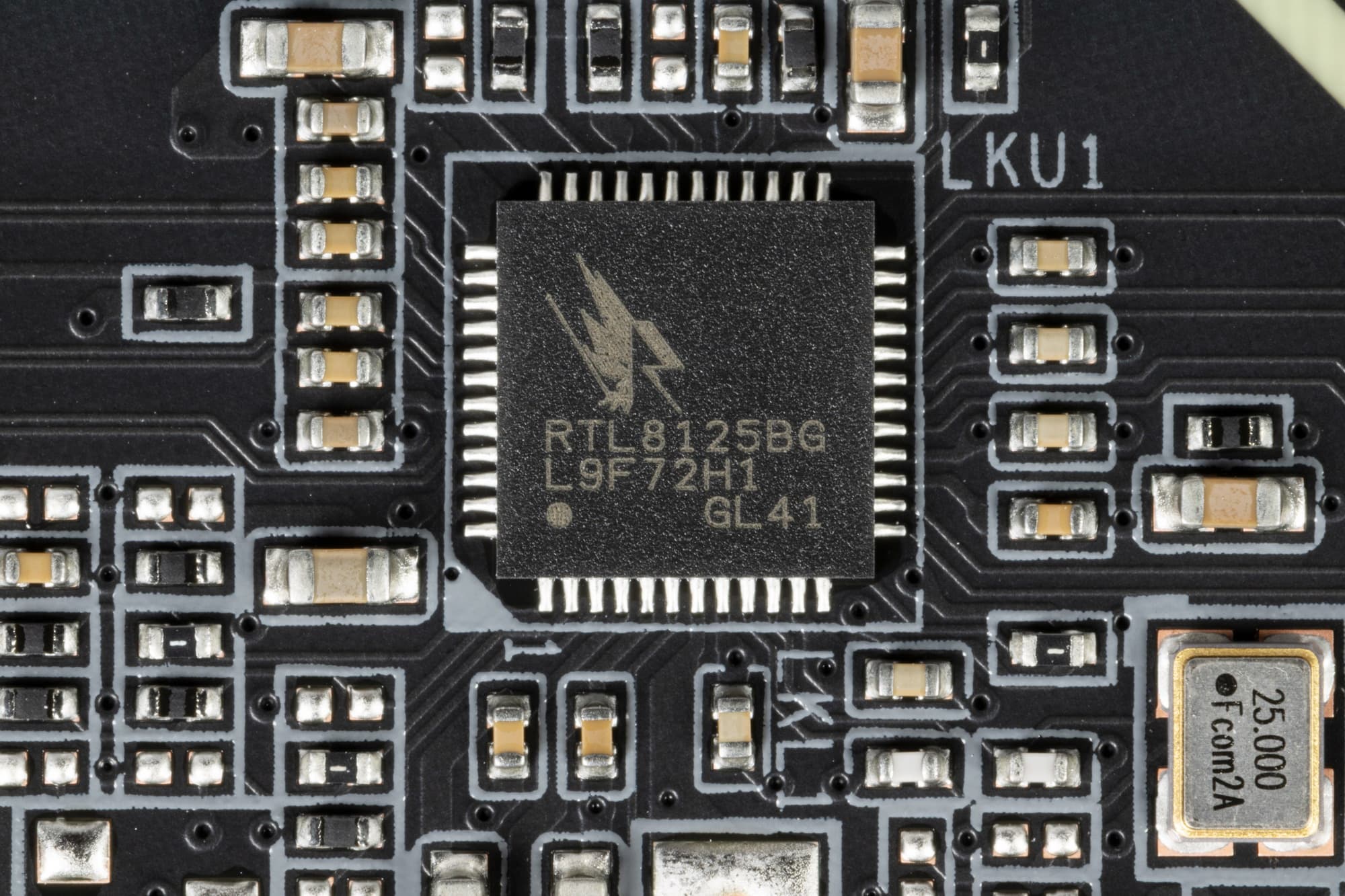 Материнская плата оснащена средствами связи неплохо. Имеется скоростной Ethernet-контроллер Realtek RTL8125BG, способный работать по стандарту 2,5 Гбит/с.