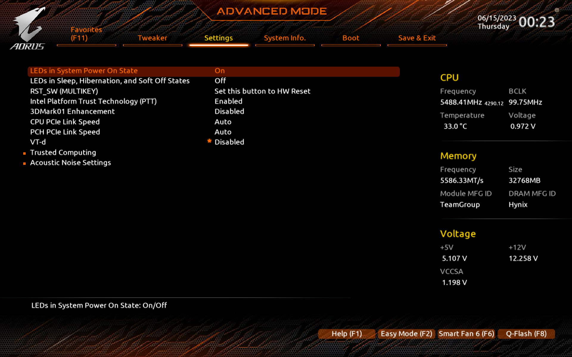| Сетевые контроллеры | 1 × Realtek RTL8125BG Ethernet 2,5 Гбит/с 1 × Intel Dual band Wireless AX211NGW (Wi-Fi 802.11a/b/g/n/ac/ax (2,4/6 ГГц) + Bluetooth 5.2) |