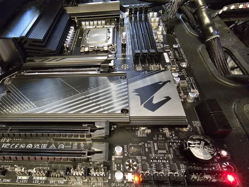 Формально имеется поддержка памяти DDR5 до 4800 МГц, однако всем хорошо известно, и производители материнских плат это активно рекламируют: через XMP-профили сейчас можно использовать частоты до 8000 МГц. В частности данная плата поддерживает частоты до 7600 МГц (это согласно информации с вебсайта компании, хотя в руководстве пользователя обозначен максимум в 5600 МГц).